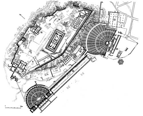 | Торговые площадки и постаменты | Рядом с пропилеями | Обилие скульптур‚ рельефов |