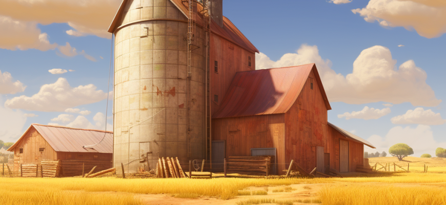 - Амбары и силосы: вместительные сооружения для длительного хранения зерна.